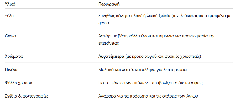 Σημείωση: Στο εργαστήριο Βυζαντινής Αγιογραφίας «Μαρία Δερμάτη», παρέχονται τα χρώματα ώστε να ξεκινήσεις χωρίς να μπερδευτείς με επιλογή υλικών.